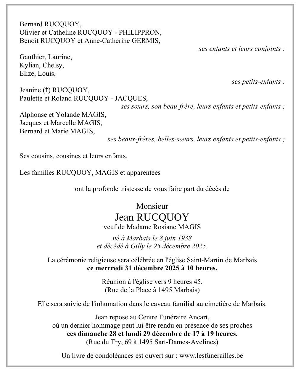 Jean RUCQUOY veuf de Rosiane MAGIS